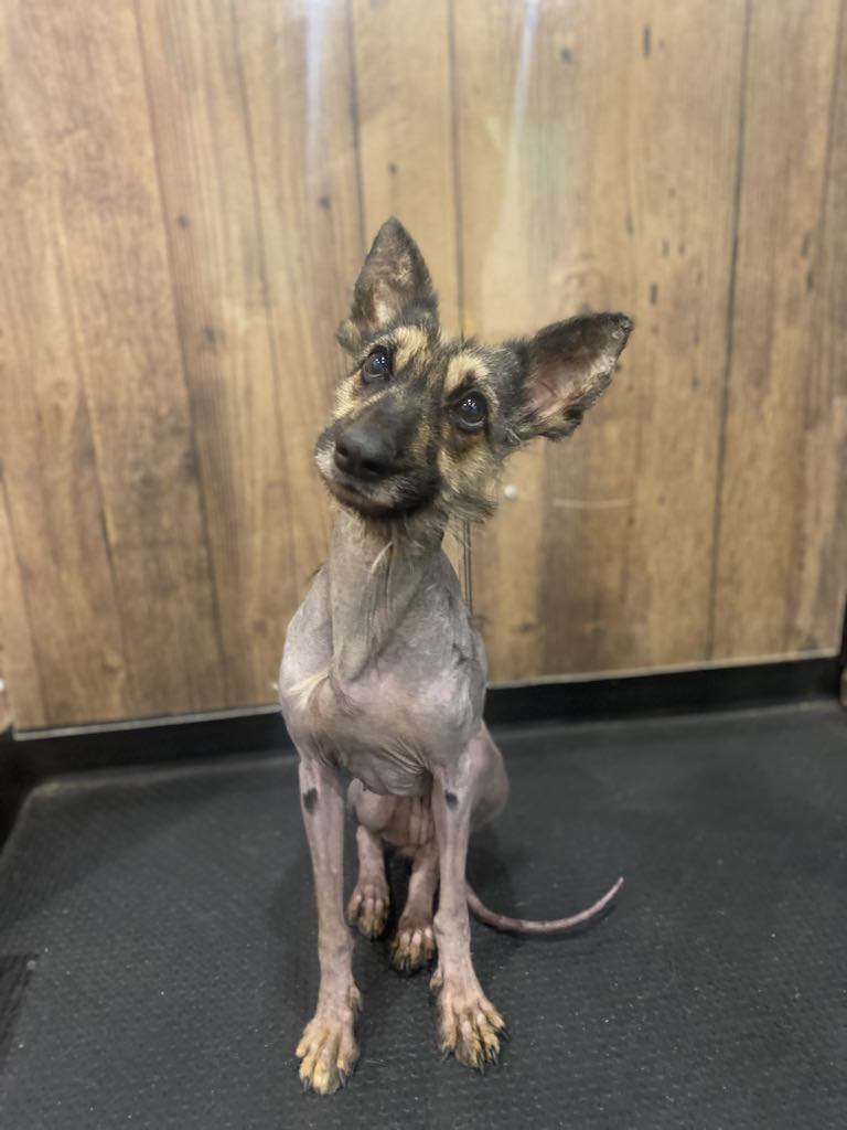 Gypsy is a 4 year old German shepherd. She came to us in October 2020 after being surrendered by her breeder due to changes in life circumstances. She also has Pituitary dwarfism and is on thyroid medication. Unfortunately due to her condition, she does not have much hair and requires medicated baths to help keep her skin in the best shape. She enjoys wearing sweaters to keep her nice and cozy. Gypsy loves to cuddle under the blankets at night and is always making new friends at dog daycare. If you would like to sponsor Gypsy, please send us an email at homesforpaws@hotmail.com
